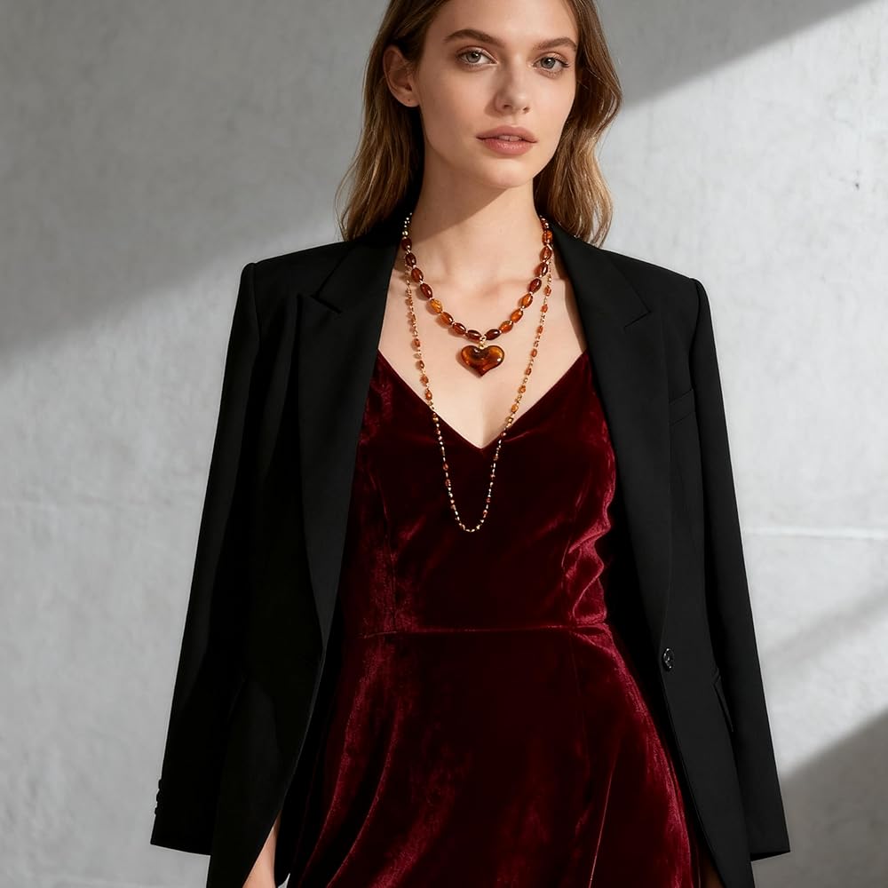 High - Quality Acrylic:Made from premium acrylic, the beads are lightweight yet durable. Their smooth surface and vibrant amber /black color give the pendant necklace a luxurious look, while the material ensures long - lasting wear and resistance to fading.