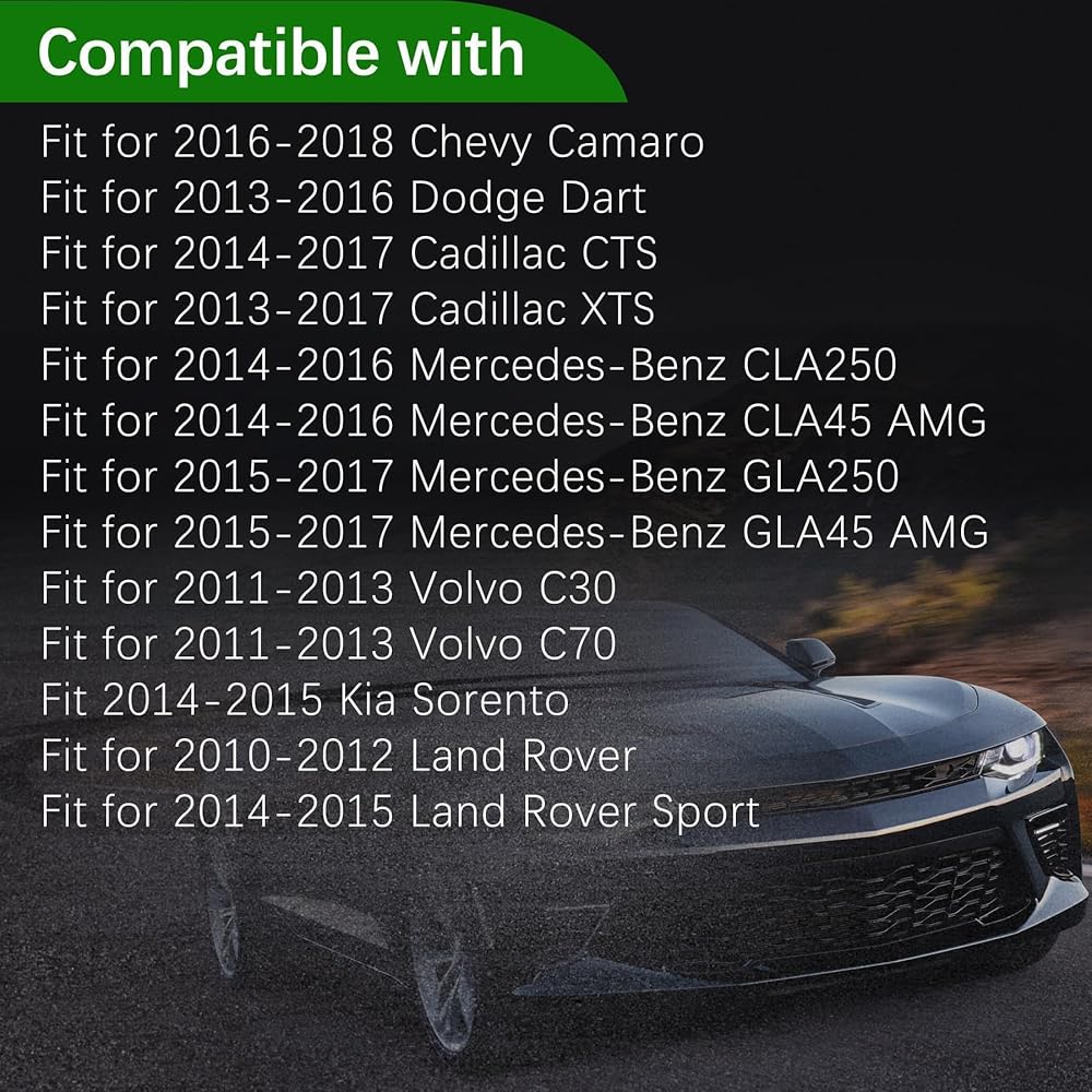 Fitment: Fit for 2016-2018 Chevy Camaro,for 2013-2016 Dodge Dart, for 2014-2017 Cadillac CTS, for 2013-2017 Cadillac XTS, for 2014-2016 Mercedes-Benz CLA250, for 2014-2016 Mercedes-Benz CLA45 AMG, for 2015-2017 Mercedes-Benz GLA250, for 2015-2017 Mercedes-Benz GLA45 AMG, for 2011-2013 Volvo C30, for 2011-2013 Volvo C70, 2014-2015 Kia Sorento, for 2010-2012 Land Rover, for 2014-2015 Land Rover Sport