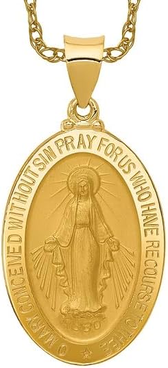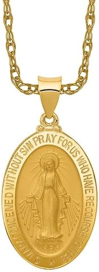 IceCarats 14K Solid Yellow Gold Our Lady of Miraculous Medal Blessed Virgin Mary Oval Necklace Chain Pendant Charm