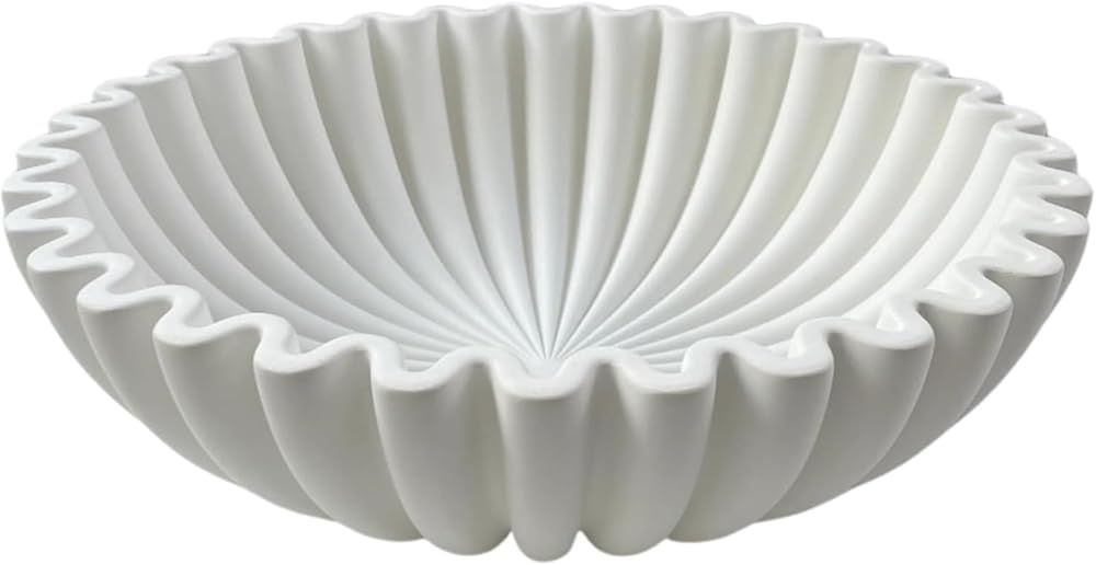 【Artisan-Crafted Organic Modern Centerpiece】Elevate your kitchen decor or refresh decorations for living room with this handmade concrete scalloped bowl. Its 10" shell bowl design blends industrial durability with organic modern home decor, featuring a smooth white decorative bowl surface that doubles as a sculptural table decor piece.