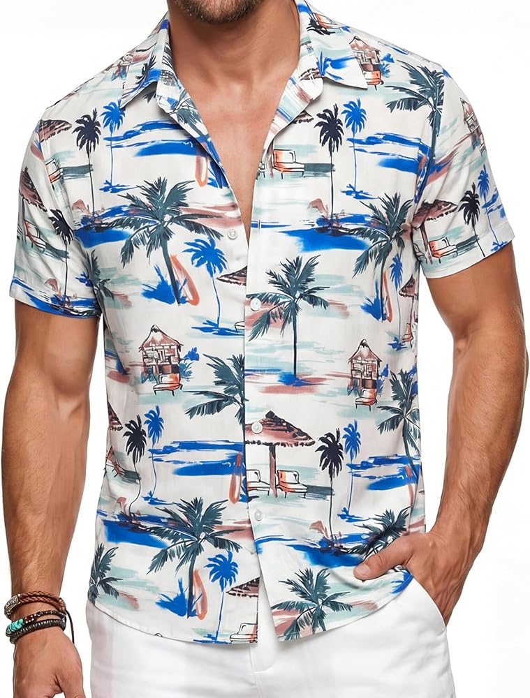 Keep Cool and Feel Fresh: Made from soft, skin-friendly 100% rayon, this hawaiian shirt for men fabric is more breathable and comfortable than cotton or polyester. It wicks away sweat quickly to help you keep cool and dry on hot days. The bold tropical print adds a fun vacation vibe that's perfect for beach outings, casual hangouts, or soaking up the sun.