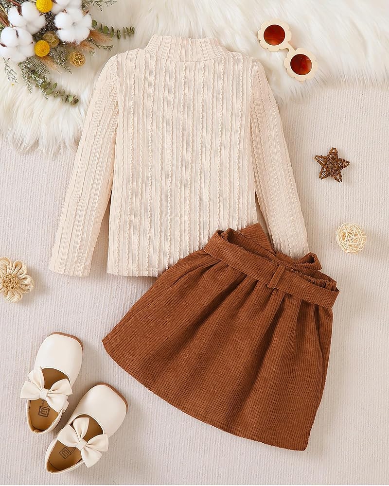 Cute design: The cozy turtleneck knit top pairs perfectly with the button-front mini skirt featuring a cute bow belt - creating the sweetest fall outfit for toddler girls. Your daughter will absolutely adore this charming set