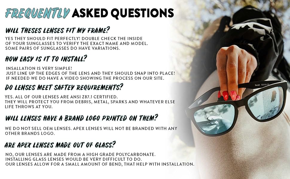 - Apex Lenses are 1.5mm thick (50% thicker than the competition)
