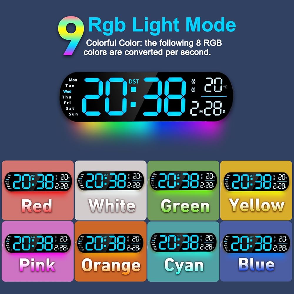 【13.7-inch LED Large Display】This rainbow digital clock features a large 13.7-inch high-definition display that simultaneously shows the time, date, day of the week, daylight saving time, and temperature. You can read it clearly, even from a distance or a corner.