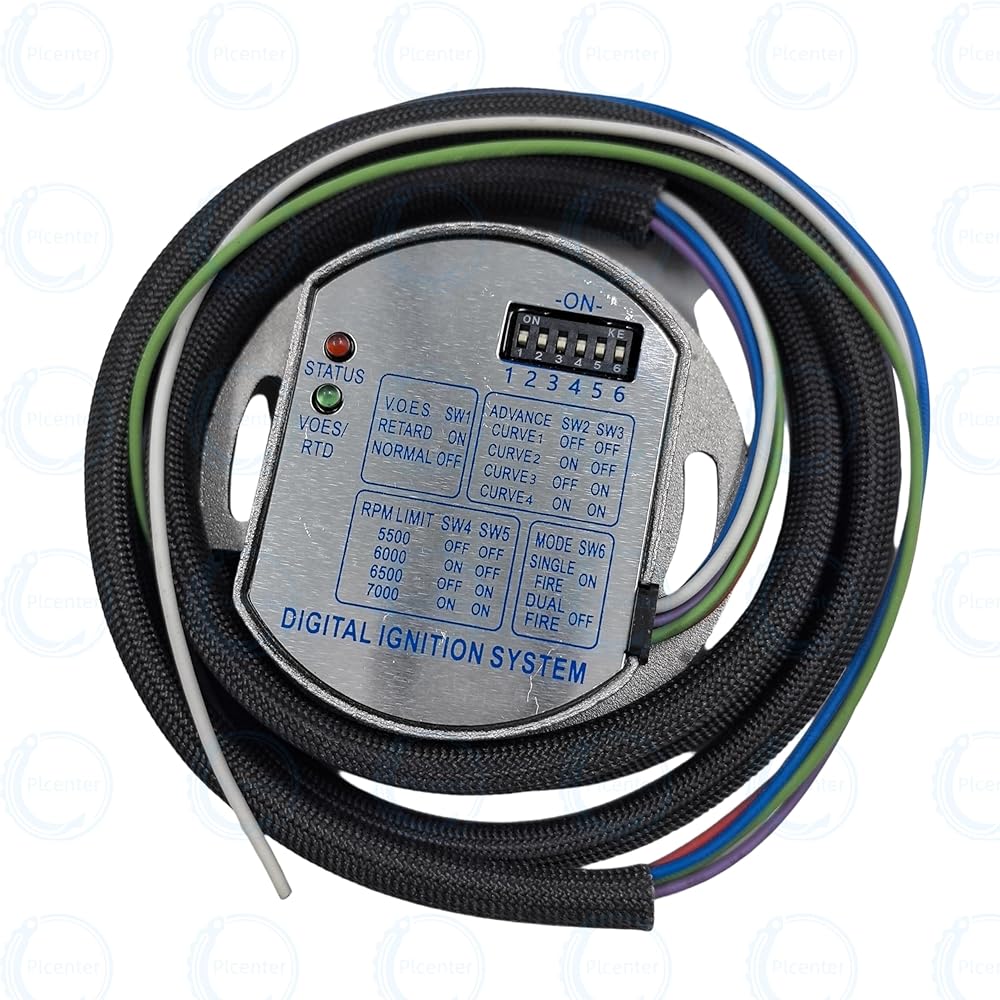 Programmable electronic ignition kit, with the rotor, single fire coil, control module and plug wires.