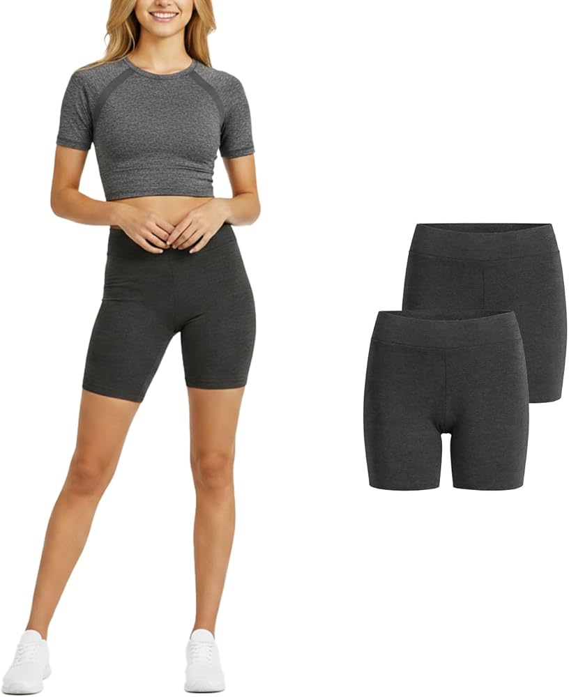 Cotton Compression Shorts Women 2Pack, High Waisted Legging Shorts Tummy Control 5" Biker Shorts