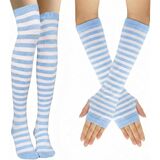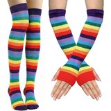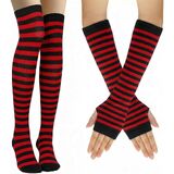 Package includes 1 pair of thigh high socks for women and 1 pair of striped gloves.