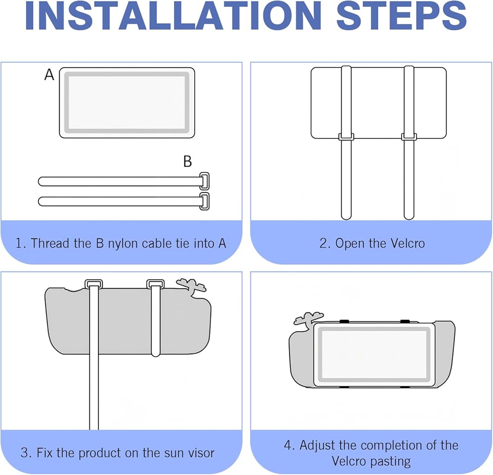 Premium Material: The cosmetic mirror is made of high-quality ABS material. The product has good impact resistance and is not easily damaged by vibration or collision during vehicle driving. In addition, it can remain stable in the high temperature environment in the car, is not easy to deform, and is firmly installed.