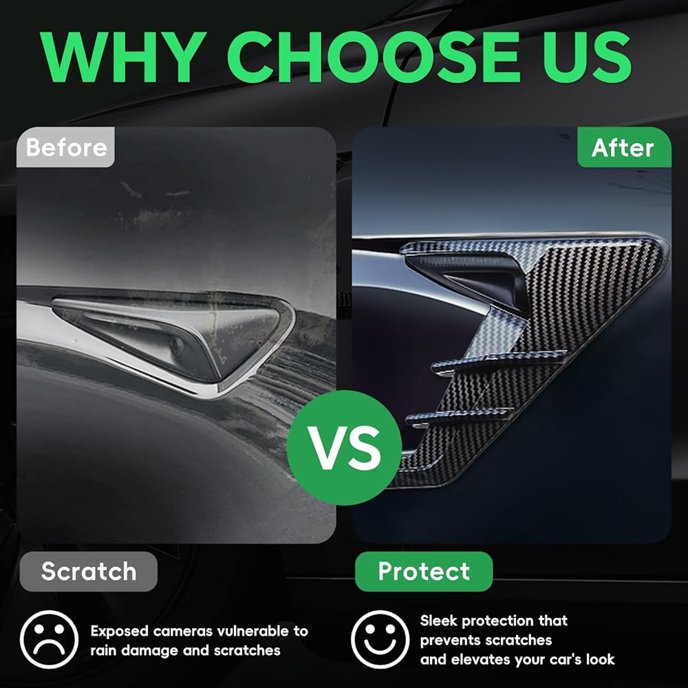 【ELIMINATE GAPS WITH OEM PRECISION 】Designed from Tesla's original side camera CAD data for 1:1 curvature/matching, this Tesla camera cover shield maintains aerodynamic integrity at highway speeds. The seamless Tesla side marker cover fit prevents peeling/bulging even during aggressive driving, ensuring your Tesla's premium look stays intact over thousands of miles. No gap issues for 2024+ Tesla models confirmed.