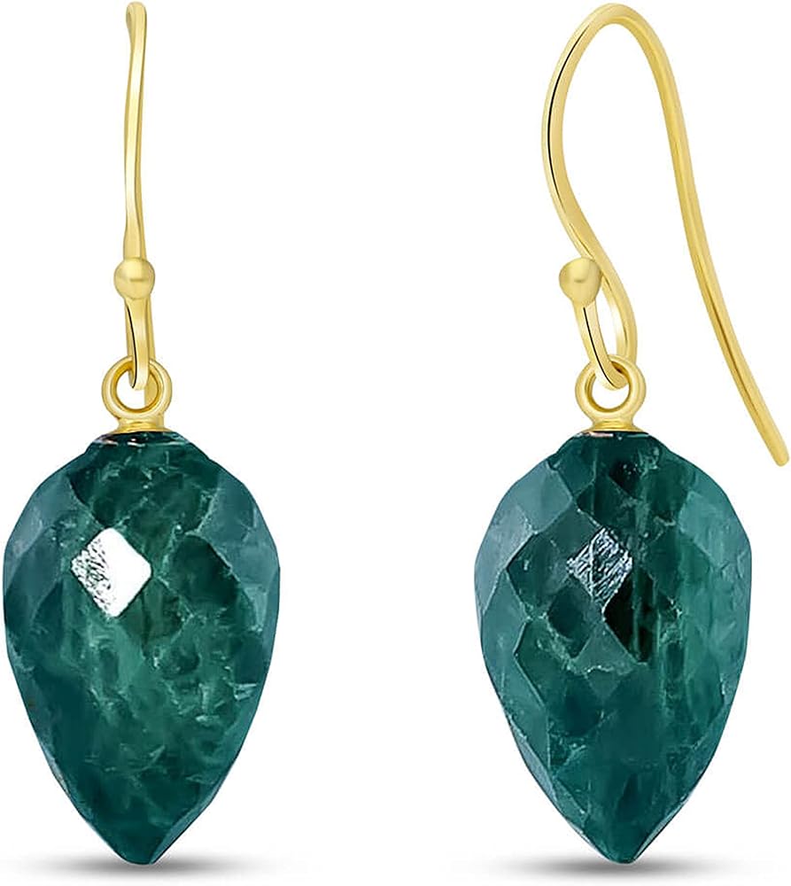 14k Solid Rose Gold Fish Hook Earrings with Natural Pointy Briolette Emeralds