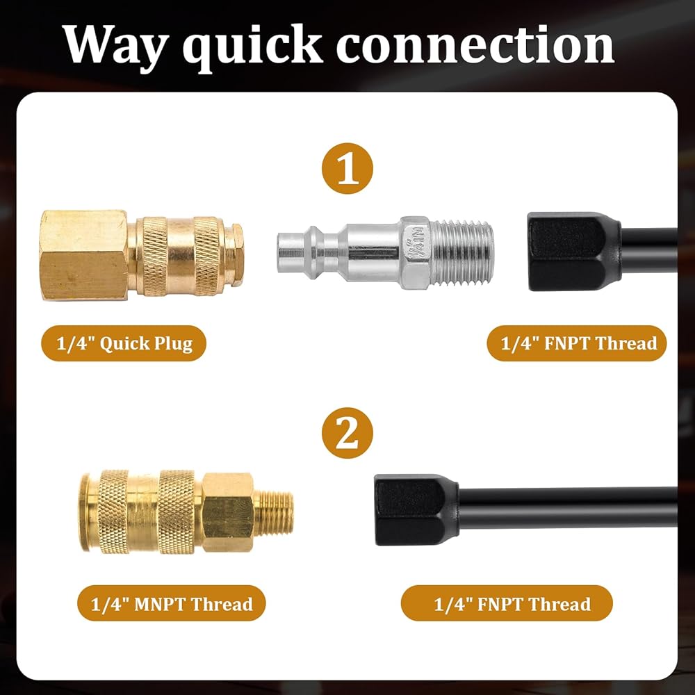 [Two-way quick connection] The dual head tire chuck is equipped with a 1/4-inch NPT internal thread, which can easily connect to the air tube, air compressor or air pressure gauge; the included quick plug can quickly connect to the female connector, and the connection is efficient.