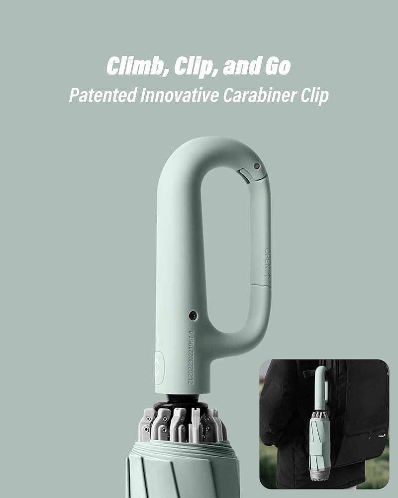 Ring Buckle Reverse Automatic Umbrella: Experience convenience like never before with our carabiner handle/ring buckle design. Easily attach your travel compact reverse umbrella to backpacks, belts, or any handy loop, ensuring it's always within reach without taking up space