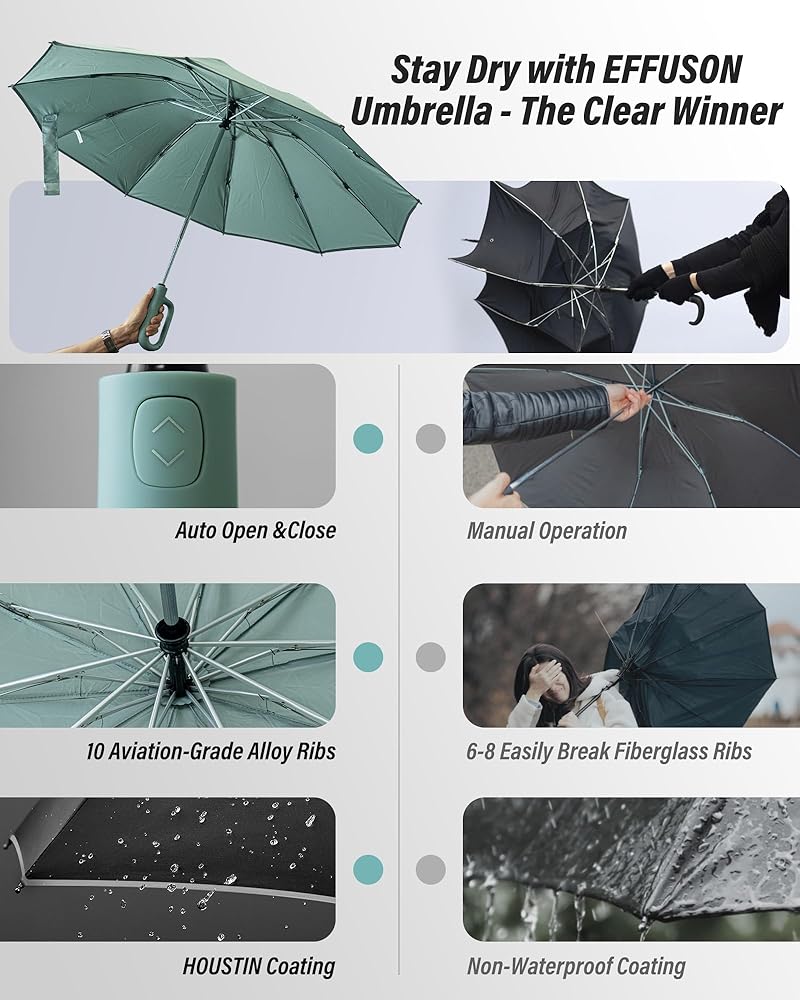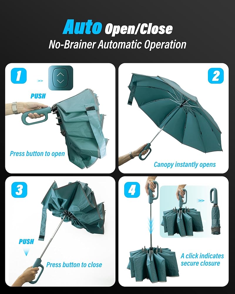 No-brainer Automatic Operation: Effortlessly open and close your umbrella with just the press of a button. Designed for one-handed operation, our automatic umbrella ensures you can easily manage it while carrying bags, making phone calls, or navigating busy streets