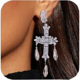 Comfortable Size: Each wedding earrings measure 4cm long and 3cm wide—bold yet wearable. Made with high-quality brass and clear AAA cubic zirconia for maximum brilliance. Clip-on backing ensures a secure and comfortable fit for non-pierced ears