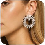 Geometric Sparkle: These statement clip earrings feature a sleek rectangular crystal center framed by baguette and oval-cut stones, creating a structured, luxurious silhouette. Designed for women who love timeless elegance with bold shine