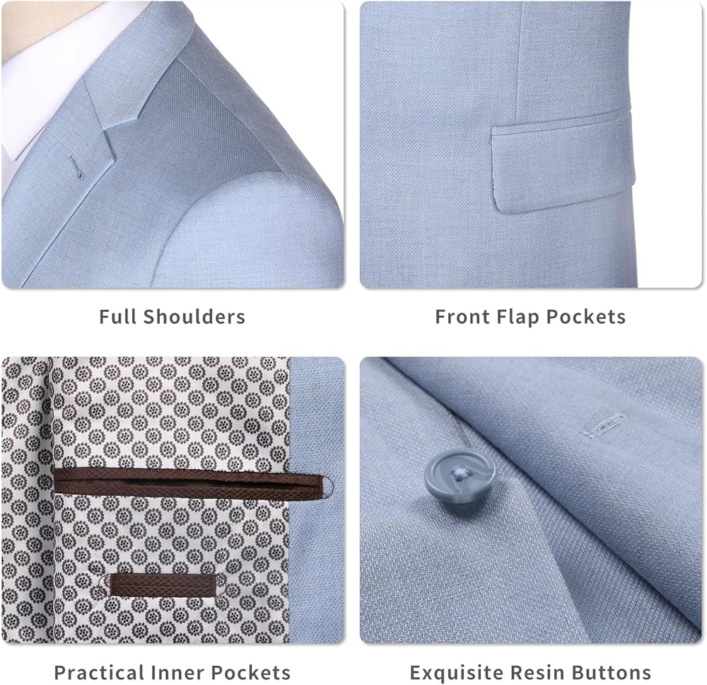 Matching: Designed with a spring and summer style, our suit is lightweight, comfortable, and exudes a fresh and stylish look. It pairs well with a variety of shirts, ties, and accessories, allowing you to create a personalized and fashionable ensemble.