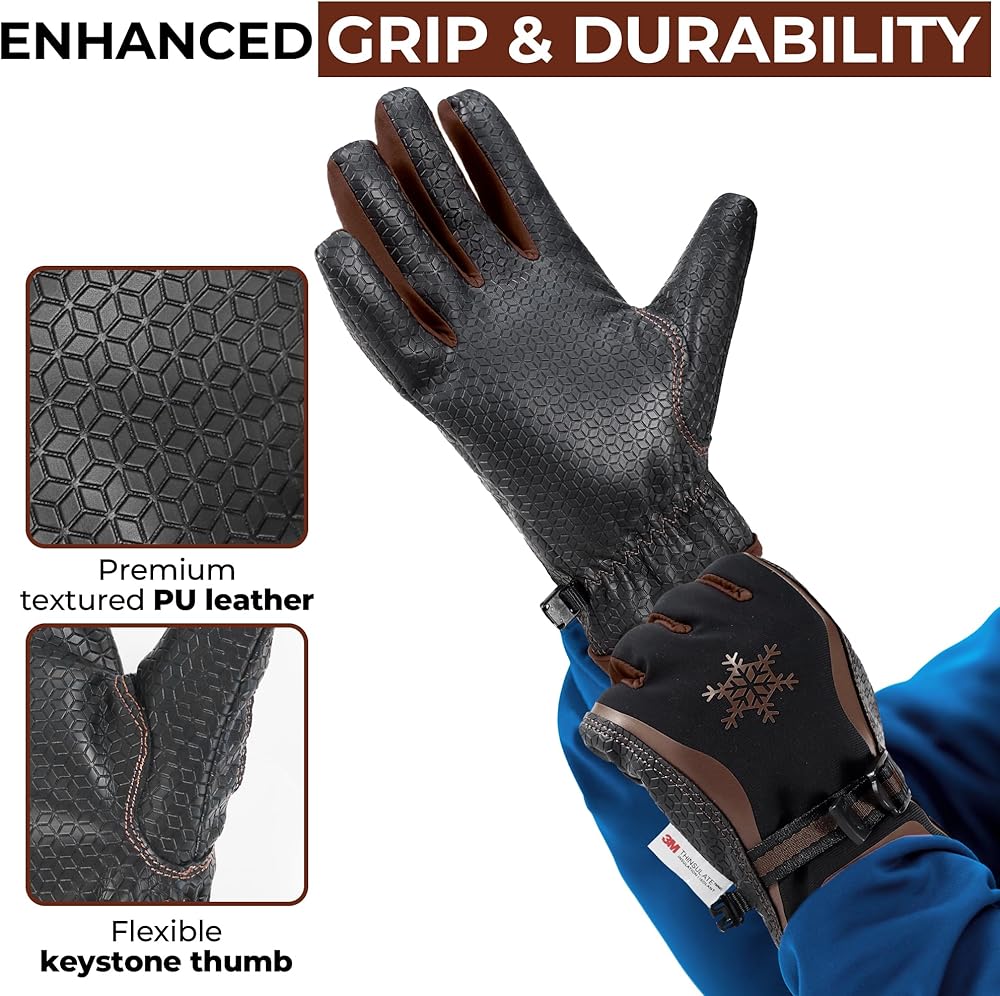Enhanced Grip & Durability: Premium textured PU leather palm with reinforced stitching and keystone thumb design ensure flexibility and non-slip grip, making these insulated winter work gloves ideal for demanding winter tasks