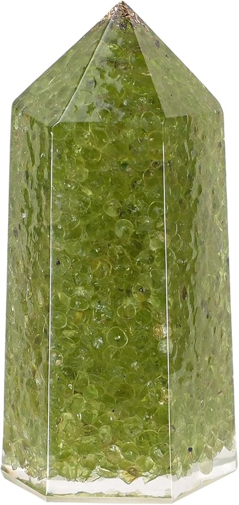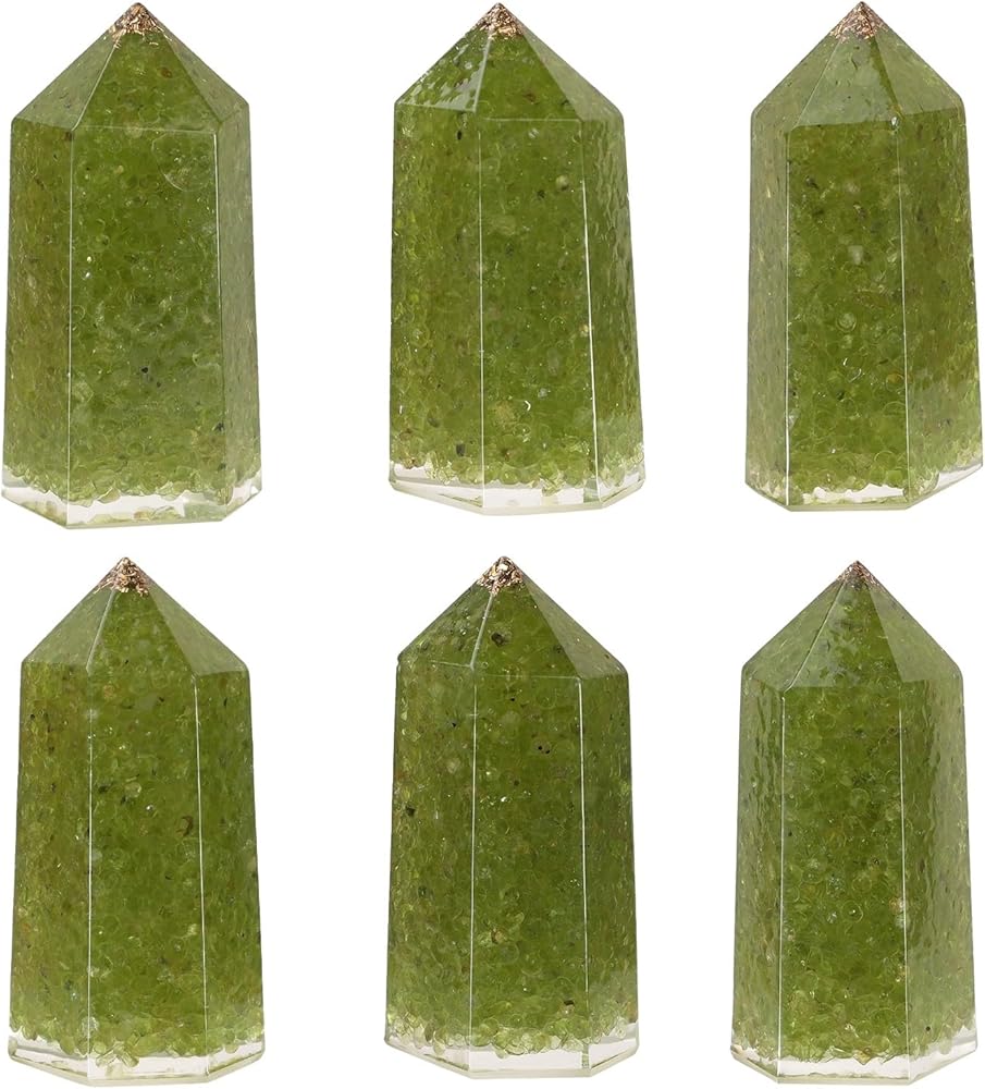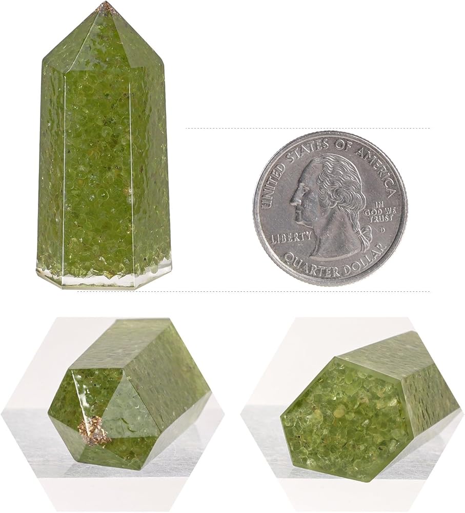 Resin Hexagonal Crystal Point: Our crystal wands are crafted by molding resin into a hexagonal column shape and infusing them with crystal stone chips. These resin crystal wands have a smooth surface and are pointed at one end and flat enough to stand upright at the other. Due to the unique nature of the crystal stones, the actual color, shape, and texture may vary from the images displayed.