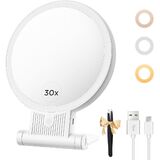 【1X/30X Double-Sided Mirror – See the Finest Details】This vanity mirror features 1X and ultra-strong 30X magnification for daily grooming and precision beauty needs. Use the 1X side for an overall view, and switch to 30X to perfect every detail—ideal for tweezing, eyeliner, or skin checkups. Tip: Keep your face within 4 inches when using 30X to avoid visual distortion.