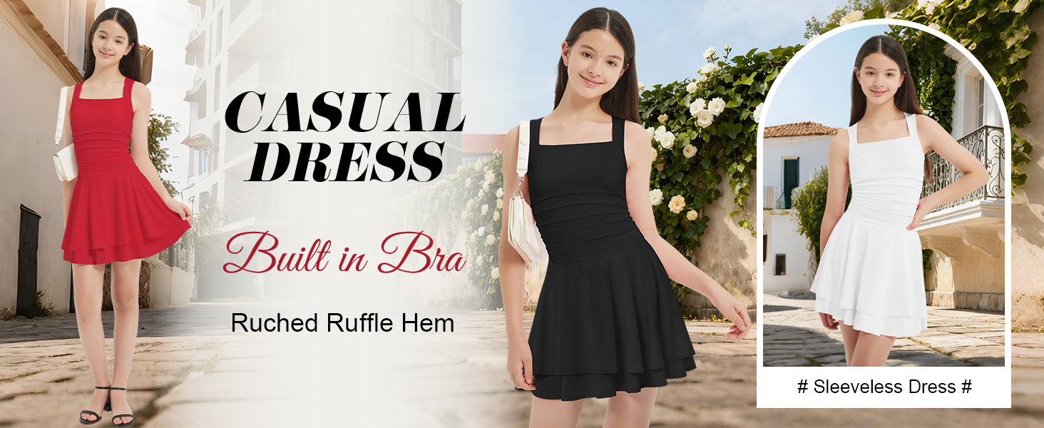 Elegant and Proper: The square neck paired with wide to narrow shoulder straps visually slims the shoulders and refines the shoulder line. Built-in bra for growing bodies, while a camisole draped neck adds layered dimension and structure