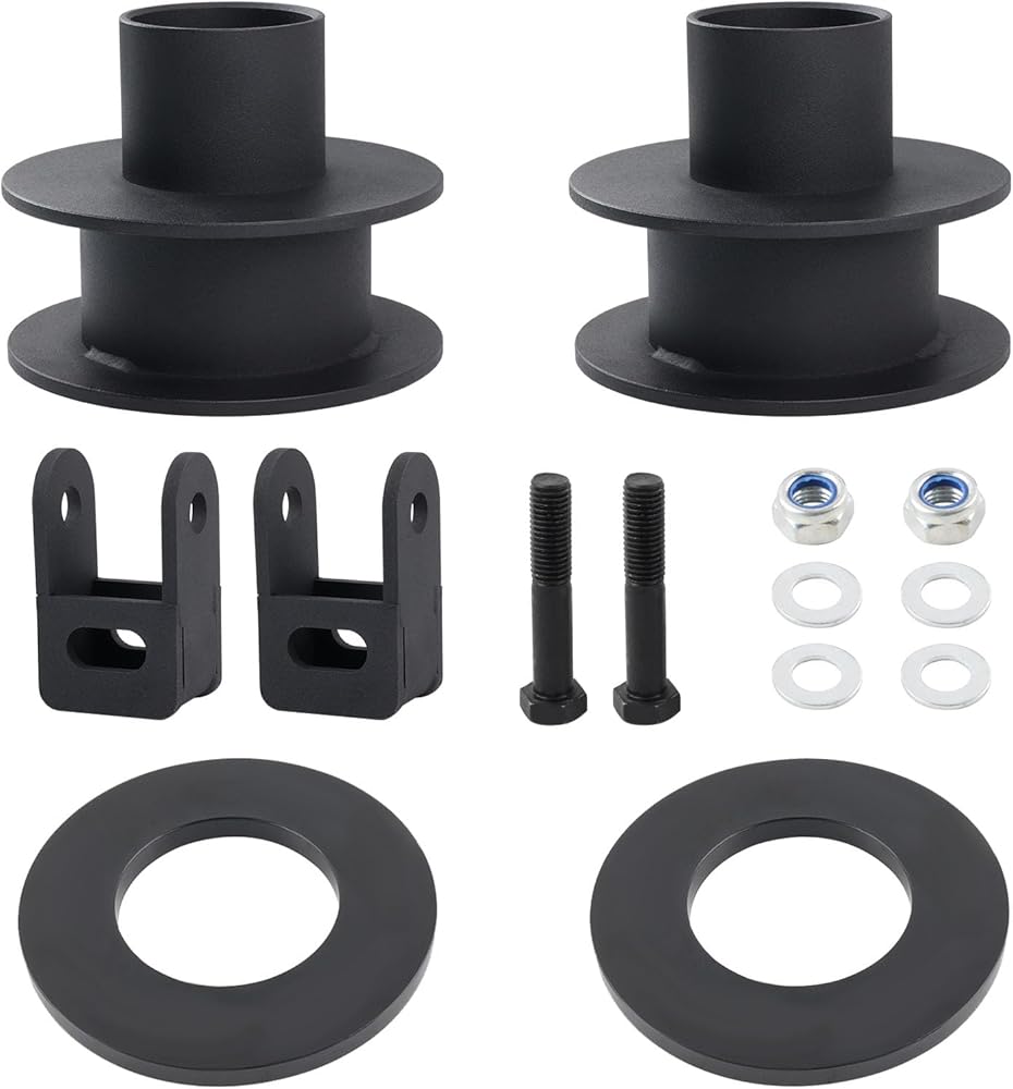【F250 F350 Leveling Kit】Improves the look of your vehicle and increases ground clearance, allowing you to fit larger custom rims and tires. You can reuse your factory shock absorbers at a near stock angle with the included Shock Mount Extenders, eliminating the need for aftermarket extended shocks. The rubber isolators Installed between the spacer and spring to maintains OEM ride quality and reduces noise