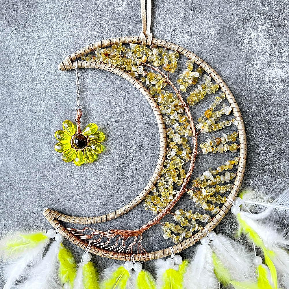 * The“Dream Guardian”dream catching net specially designed for children is inspired by soft pink crystals, bright moonlight and light feathers to weave a fairytale. The center is inlaid with natural pink crystals, symbolizing love and protection,and the bottom hangs a gradient feather tassel that dances gently in the wind, adding spirit and warmth to the child's room.