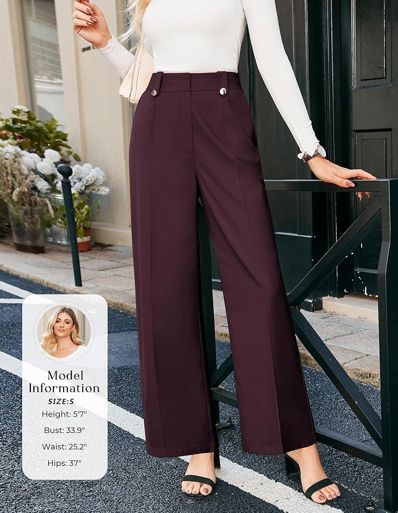 [Unique Features]: Business casual slacks designed with polished buttons and delicted wiring on the waistband,ultra-wide legs and high-waisted pants that elongates your torso and balances proportions