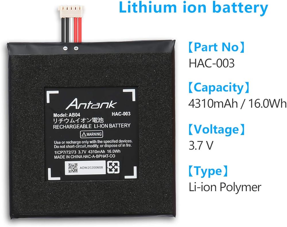 ✅3.7V 4310mAh 16Wh Lithium-ion Rechargeable Battery Pack. HAC-003 Internal Replacement Battery Pack, the physical size is identical to the original and it works in exactly the same way, no modification needed.