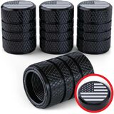 American Flag Valve Stem Caps – Onyx Black, Anti-Rust Anodized Aluminum, Universal Fit for Car, Truck, SUV, Bike – Set of 4 (Onyx Black)