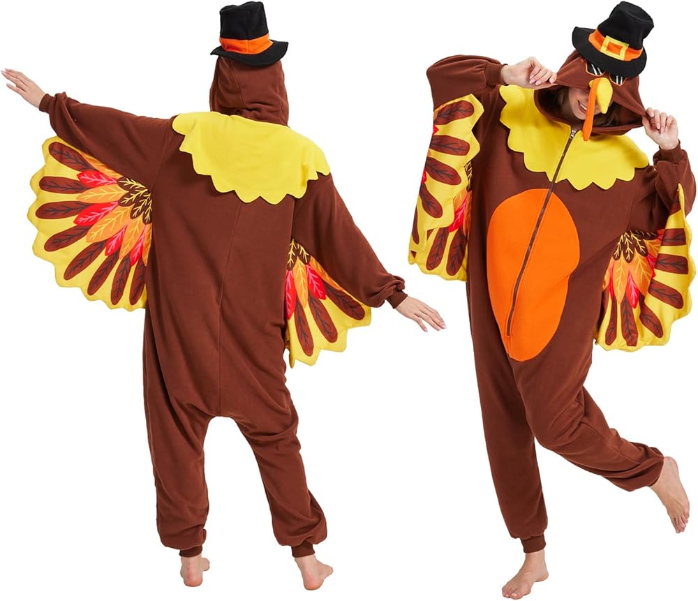 UNISEX SIZING: Turkey onesie size S fit for height from 4'11"-5'2"; M fit for height from 5'3"-5'6"; L fits for height from 5'6"-5'10"; XL fit for height from 5'11"-6'2"; XXL fit for height from6'2"-6'6"; Please check the size chart to choose the right size for onesie pajamas carefully
