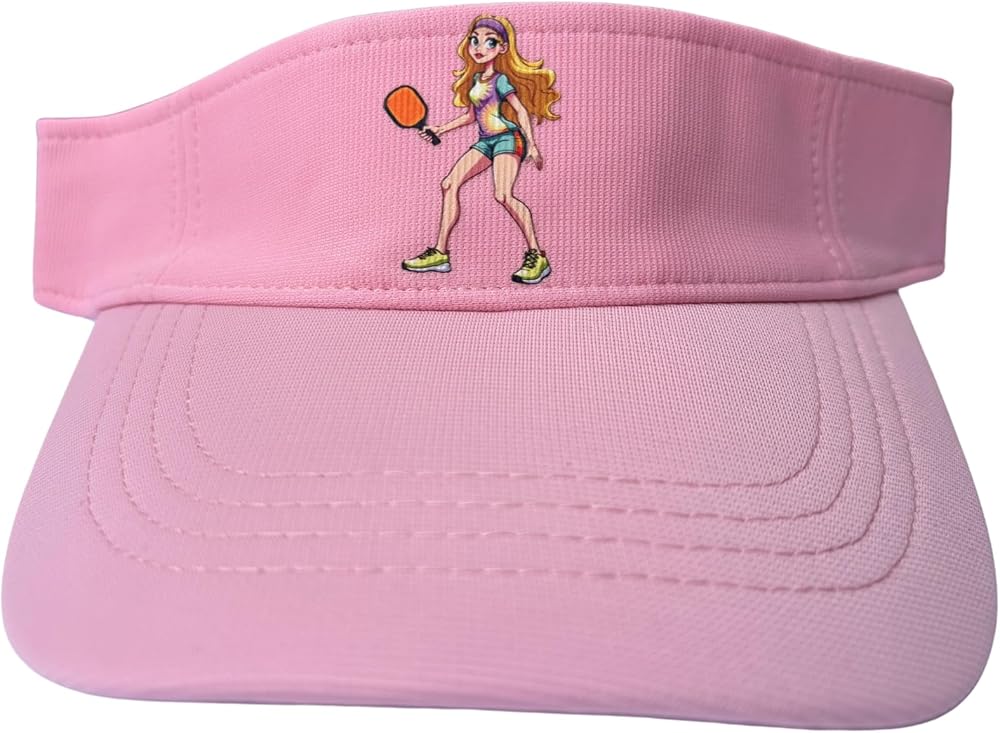 Blue visor with a fun pickleball character printed on the front, perfect for pickleball enthusiasts One-size-fits-most with customizable comfort for any head size Polyester construction provides breathability and lasting wear for regular use on the course Provides effective shade for your face and eyes during outdoor activities