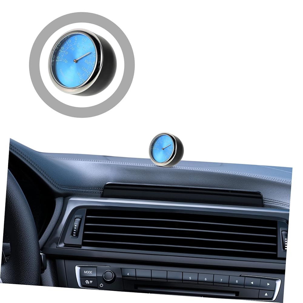 BESTYASH Luminous Car Thermometer Clock with Quartz and Electronic Timekeeping Blue Dashboard Air Vent Temperature Gauge for Vehicle Interior High Temp Monitoring with Night Light Display