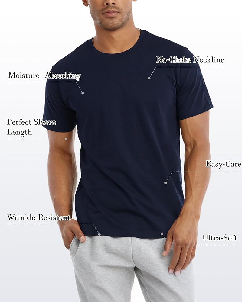 【Classic Crew Neck Style】 – Timeless short sleeve crew neck design that's versatile for layering or wearing on its own.
