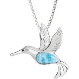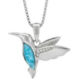 Sterling Silver Natural Larimar CZ Hummingbird Necklace Pendant with 18" Box Chain in Kuwait