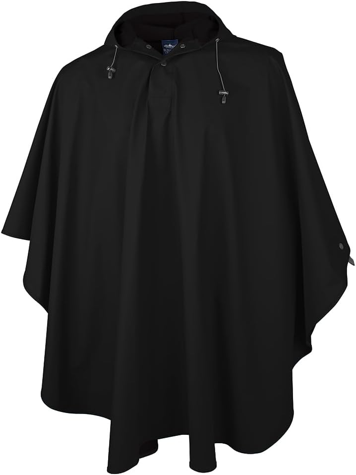 High quality, multi-use poncho made from waterproof new Englander polyurethane bonded to a knit backing. Features heat-sealed seams and hood with snap neck and drawstrings for added wind/rain protection. Side snap closure under arms. Coordinates with new Englander pant style 9198.