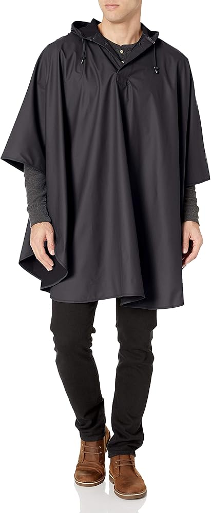 Hochwertiger, vielseitig verwendbarer Poncho aus wasserdichtem New Englander Polyurethan, verbunden mit einer Strickunterseite. Verfügt über hitzeversiegelte Nähte und Kapuze mit Schnappverschluss und Kordeln für zusätzlichen Wind-/Regenschutz. Seitlicher Druckknopfverschluss unter den Armen Passend zum englischen Hosenstil 9198.