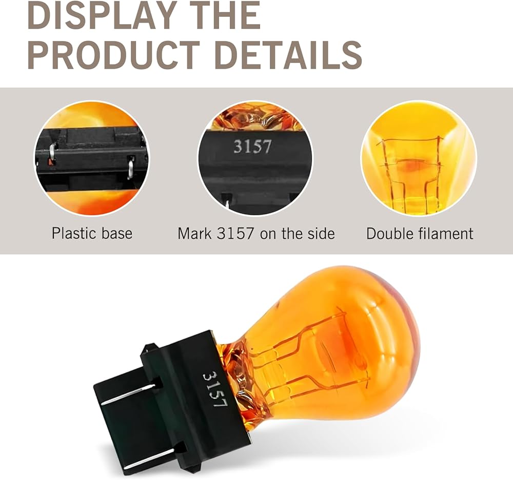 Multifunctional: The 3157 bulb can be used for automotive turn signals, brake lights, signal lights, taillights, side lights, etc. It can meet various lighting and warning needs, reducing the trouble of purchasing different bulbs.