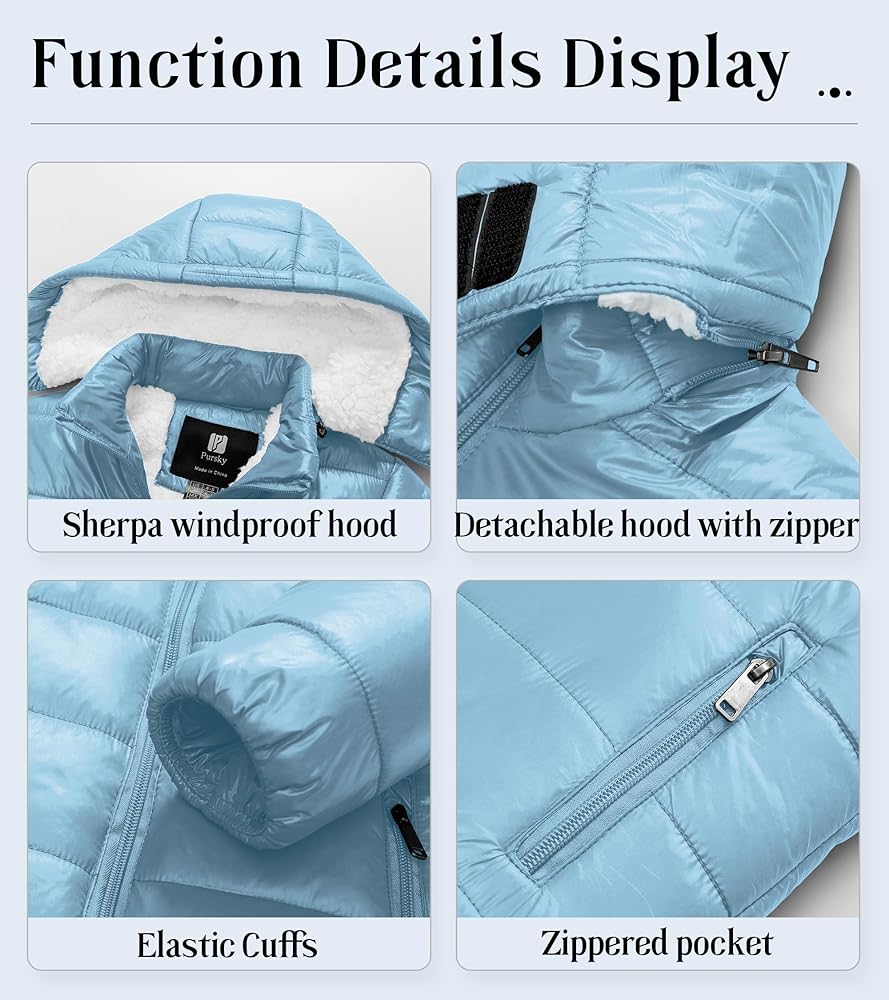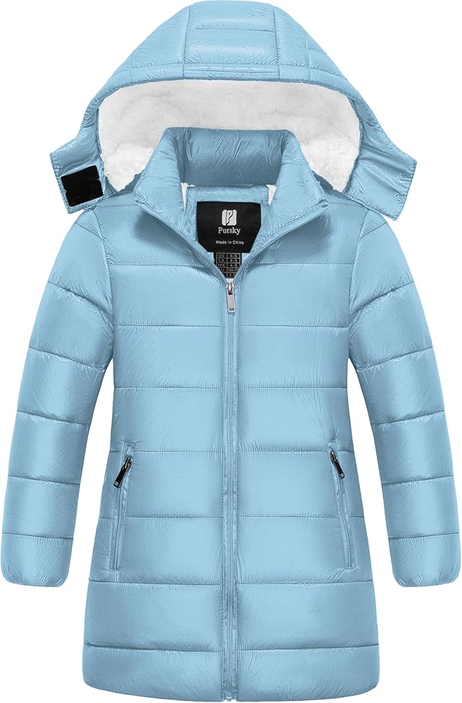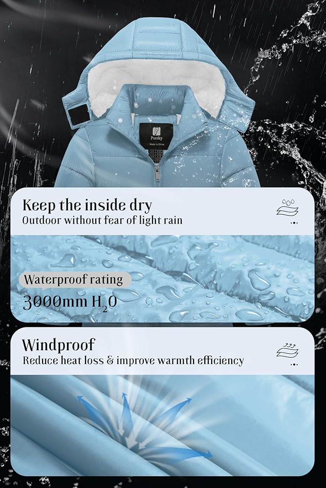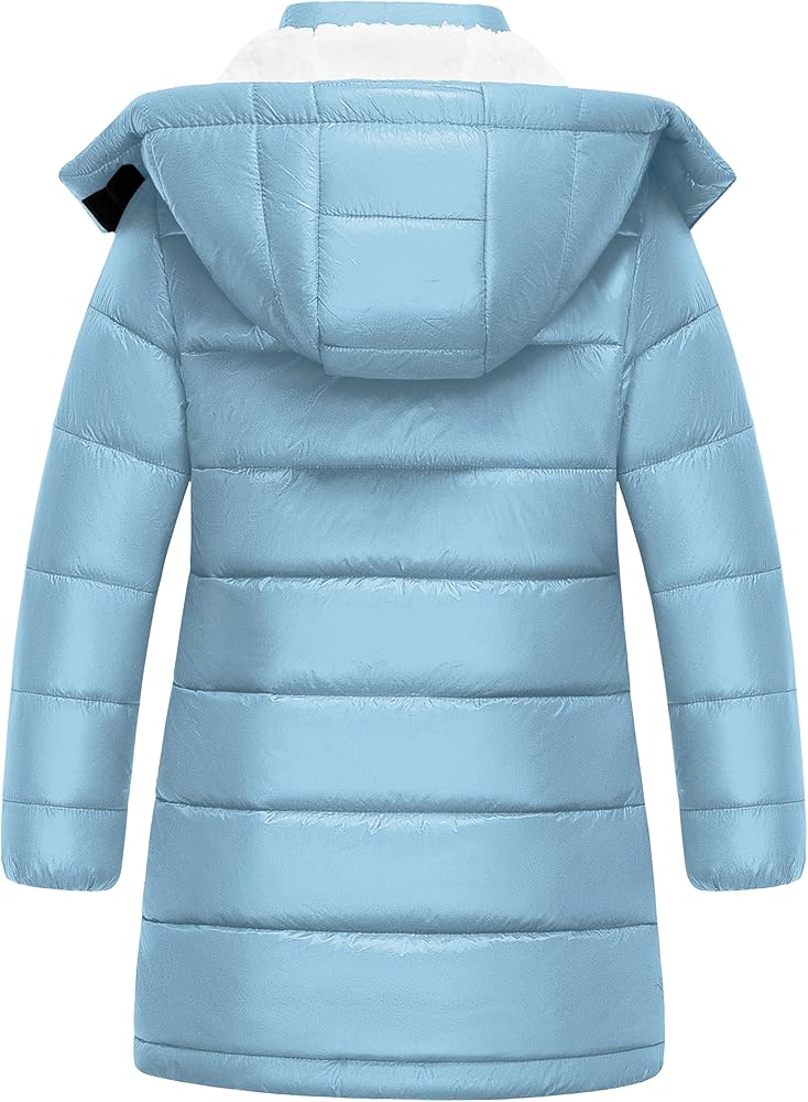 Fluffy and Full-body Sherpa lining:It locks in kids' body heat,fends off external cold air,and keeps them warm and cozy even in low temperatures.Our fluffy synthetic insulation is eco-friendly and easy to care for,make your child stays cozy and stylish.The lightweight, non-bulky design of girls' winter coats makes them easy to carry,Simple to pack in bags without taking up much space.