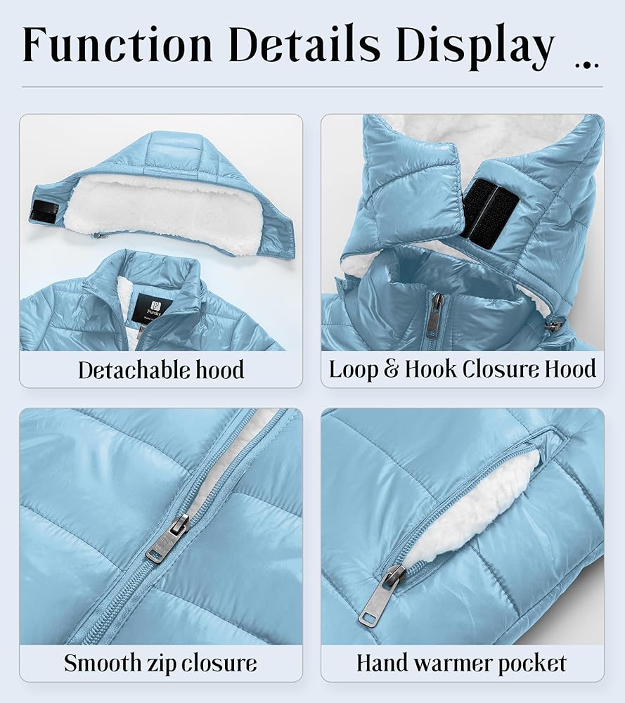 Practical Details:This girls outerwear jackets & coats features front zipper pockets,detachable sherpa fleece lined hood,windproof elastic cuffs.keeping essentials close at zipper pockets,making it both functional and fashionable.The smooth zipper glides effortlessly,making it easy for kids to zip up or down on their own.It stands up to frequent use,enduring daily wear and play with lasting performance.