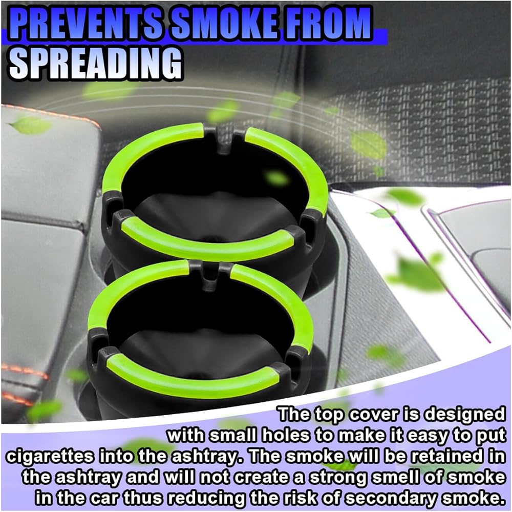 2PCS Smokeless Car Ashtray, Glow In The Dark Smellproof Cup Holder Ashtray with Lid, Multifunction Portable Auto Interior Ash Trash Holder for Keep Tidy, Universal for Car, Truck, SUV (Black)