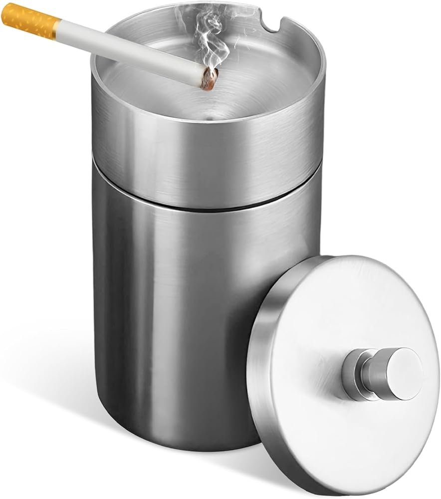 Superior Quality: This ashtray is crafted from high-quality stainless steel known for its excellent corrosion resistance and toughness. The metal surface withstands frequent use without scratching or deforming, ensuring the product remains intact and visually appealing over time