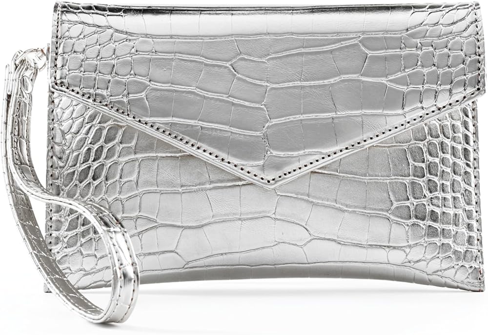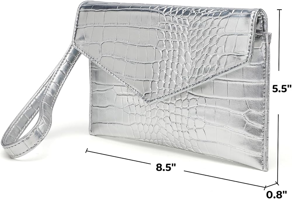 Envelope Clutch Purse for Women Faux Leather Handbag Wallet Evening Bag with Wristlet & Chain Strap