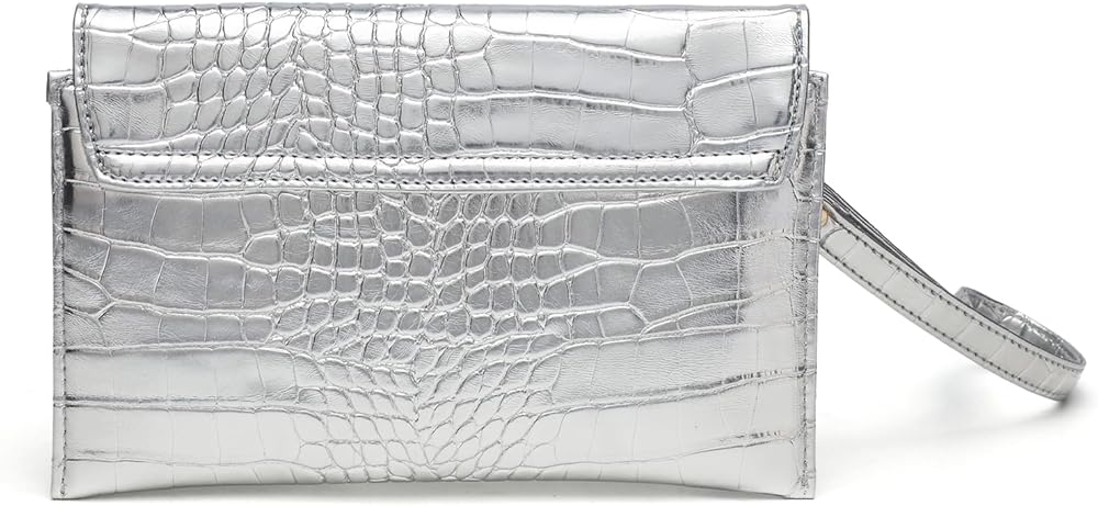 【Bling Bling Clutch】This gold clutch purse is made of gold color faux leather by shiny bright metallic crocodile skin style, which is durable & easy to clean. It comes with a removable wristlet strap with 4" length, which make this gold clutch handbag as a wallet & clutch bag, providing you with different carrying options.