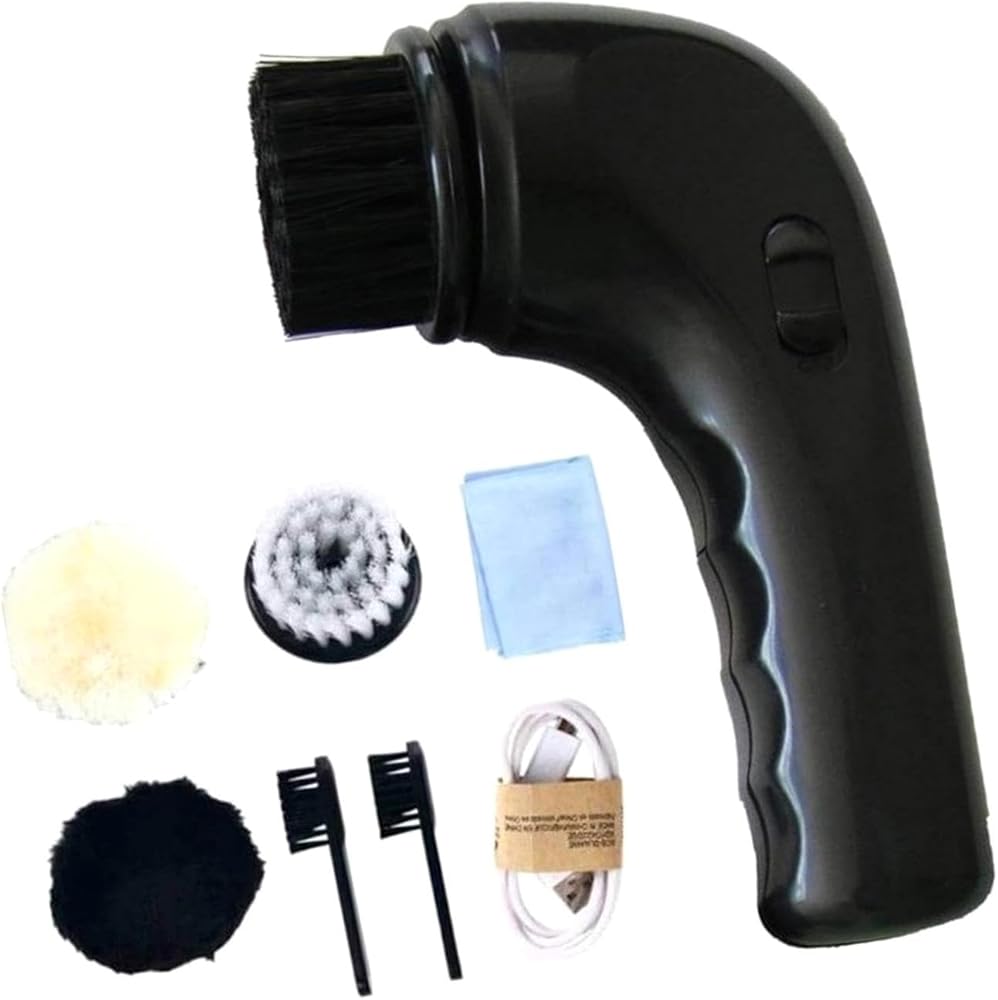 - 【Complete Shoe Care Kit】Electric Shoe Polisher comes with 1 machine, 2 polishing brushes, 1 oil brush, 2 cleaning brushes, a charging cable, and a cleaning cloth for