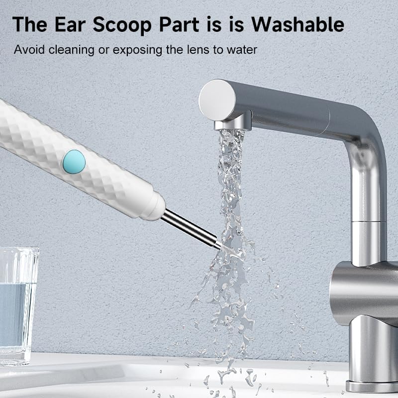 𝟭𝟬𝟴𝟬𝗣 𝗛𝗗 𝗩𝗶𝘀𝗶𝗼𝗻 & 𝗦𝗮𝗳𝗲 𝗕𝗼𝗱𝗶𝘆 𝗧𝗲𝗺𝗽: Experience crystal-clear ear canal viewing with the 1080P HD camera and 6 adjustable LED lights. Designed with safety first, the tip maintains a comfortable temperature close to body heat during use.