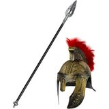 【Medieval Accessories Set】This set includes a medieval Roman gladiator helmet with a red feather hair crown and a Spartan spear, both made of high-quality plastic, the interior of the spear has a hollow design to ensure aesthetics and at the same time, the weight is controlled, even if it is a long time with the use of the helmet, you won't feel tired, it is the ideal props to play as a Spartan warrior, gladiator.
