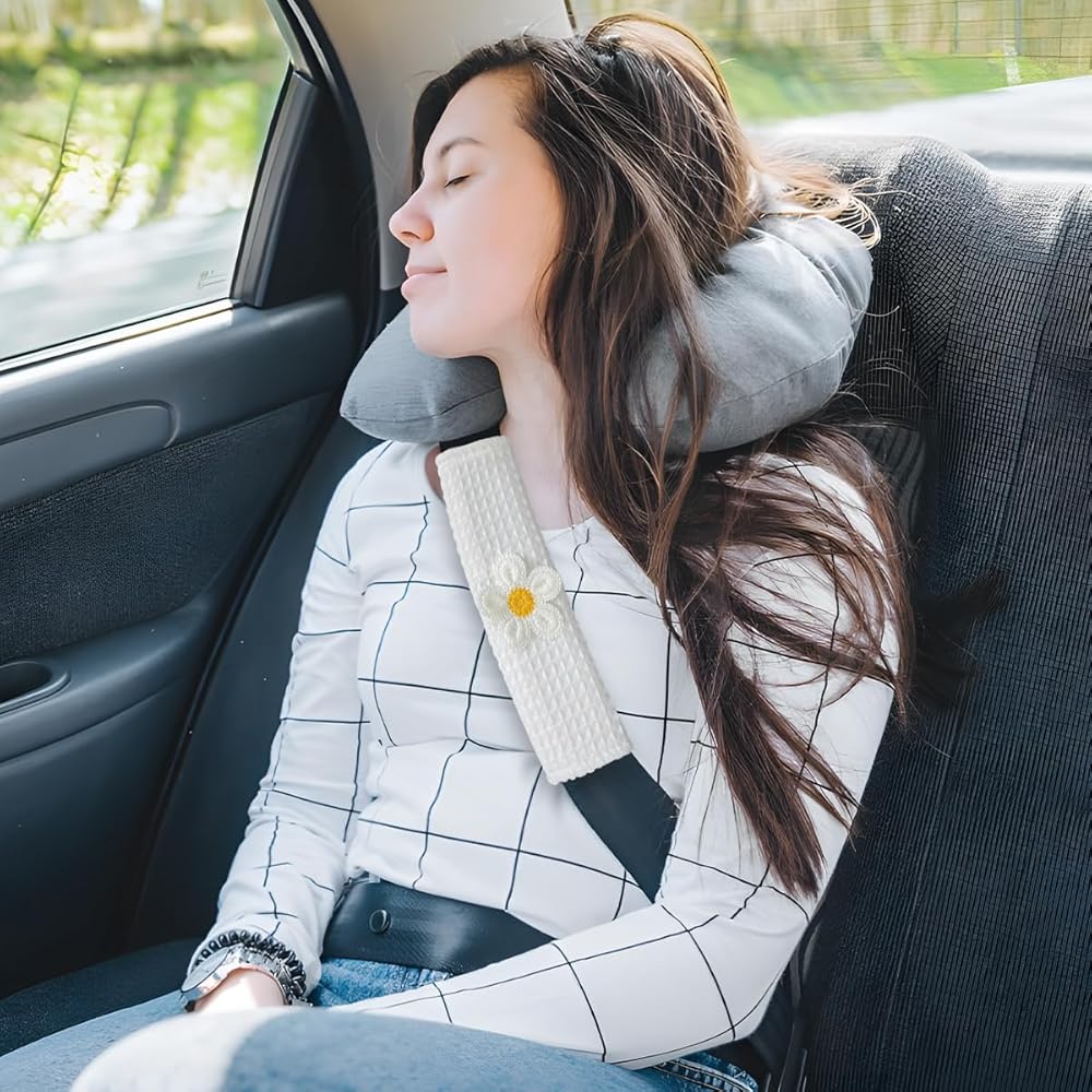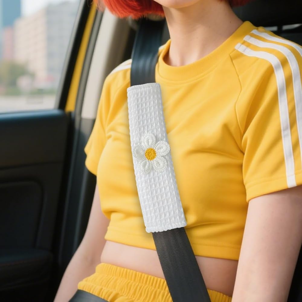 Practical Function: Our car seatbelt shoulder pads can effectively cushion the pressure of the seatbelt on the shoulders, and keep your shoulders comfortable even after long hours of driving. Waffle texture with cute floral pattern, exquisite and beautiful, adding fashionable and cozy atmosphere to the car. The magic sticker closure ensures that the shoulder pads are firmly attached to the seat belts, and always play a stable role in reducing pressure and protection.