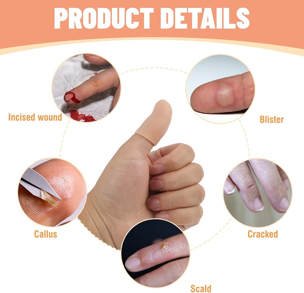 Keep your fingertips protected and supported with this 20-piece set of gel finger protectors. Designed for comfort and flexibility, each finger cot is made of soft silicone material that stretches to fit most thumb sizes snugly without restricting movement. Whether you're painting, typing, doing electronic repairs, gardening, crafting, or crocheting, these silicone finger protectors help support your fingertips and minimize friction during use. Each sleeve is waterproof, making them ideal for both dry and wet tasks such as hand-washing, cleaning, or even outdoor chores. The silicone surface is easy to rinse and reuse with just soap and water, so you can keep them in rotation for daily needs without waste. These finger sleeves are lightweight, breathable, and perfect for repetitive finger tasks at work or home. This bulk pack includes 20 thumb-sized covers, ensuring you have plenty for personal use or sharing with others. Stay focused on your work without discomfort or interruptions—these silicone finger cots are the perfect hand accessory for a wide range of daily activities that require precision, protection, and ease.