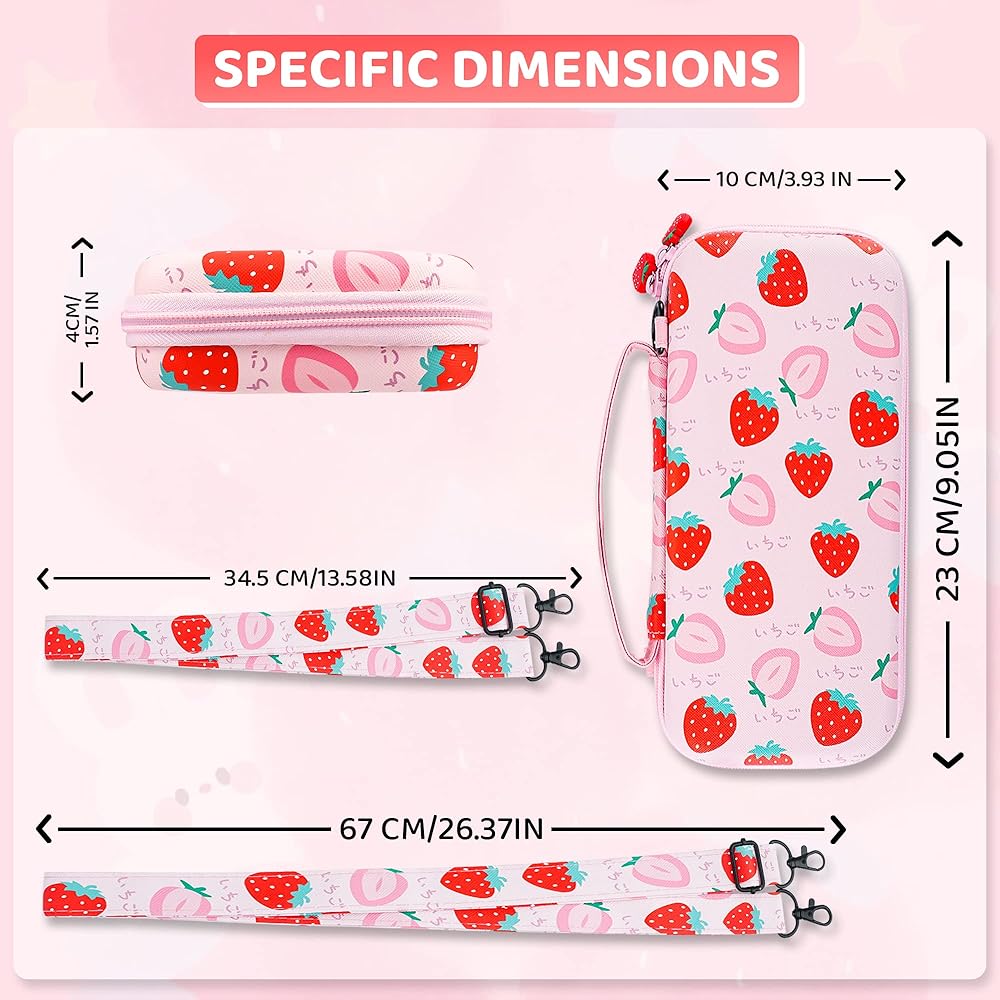 🍓You Can Get: Strawberry carrying case x 1, screen protector x 1, strawberry protective case for switch Lite x 1, strawberry thumb cap x 2, adjustable shoulder strap x 1. Any issues just feel free to contact us, we will do our best to assist you.