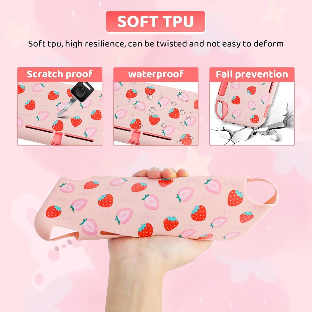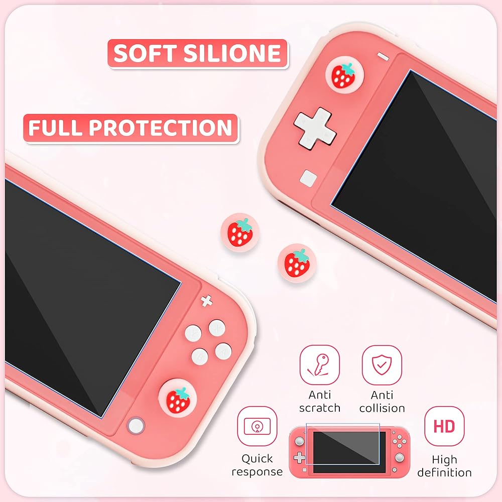 🍓Strawberry Protective Case: Lightweight soft case with a comfortable handle design. The easy to attach and detach shell to simplify use, and enhances your handheld feel without adding too much weight. Isolates smudges and dust to keep the switch Lite safe for everyday use.